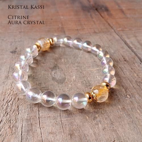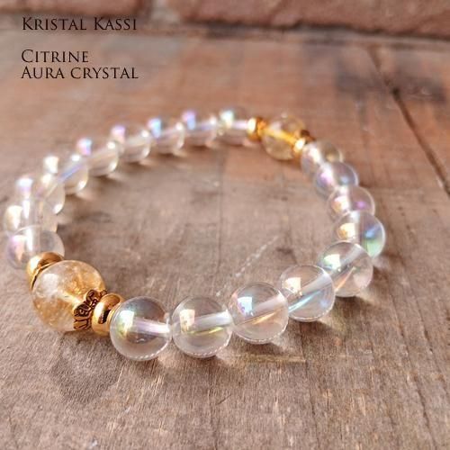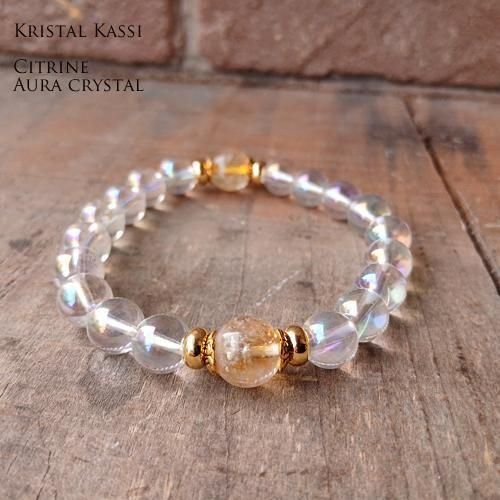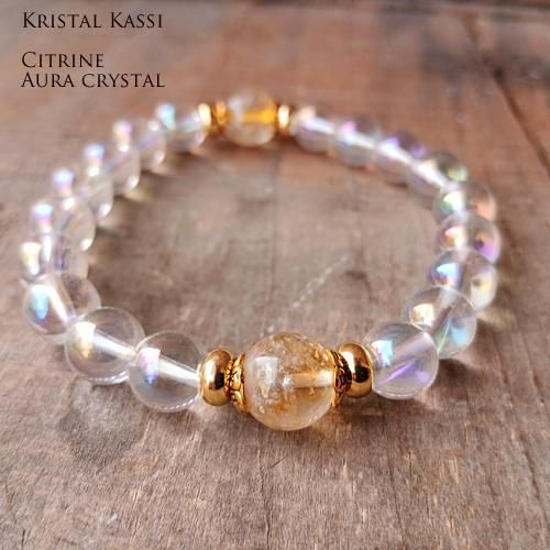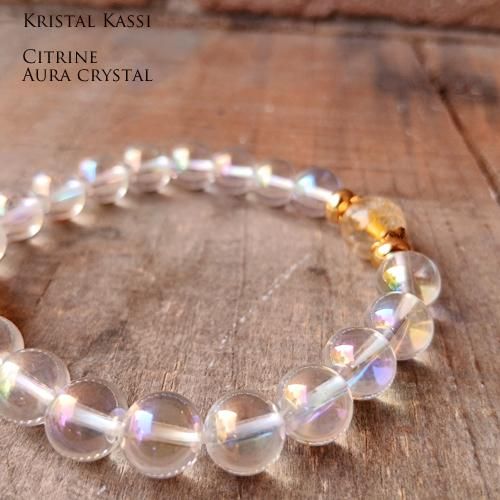 希少な天然色の本物のシトリンとオーラクリスタルのブレスレット