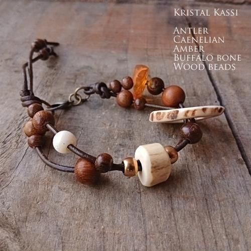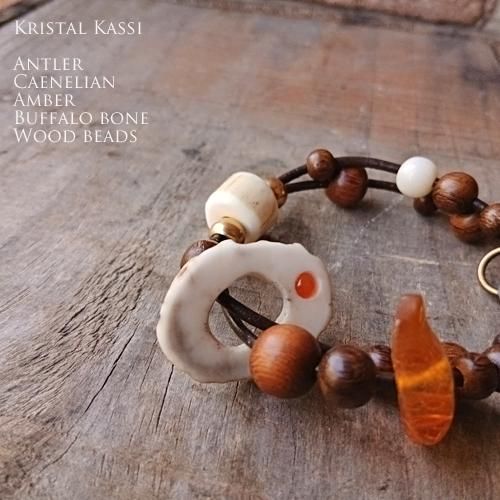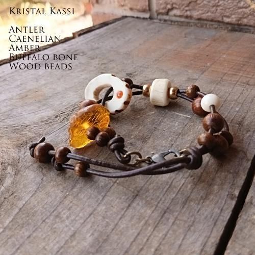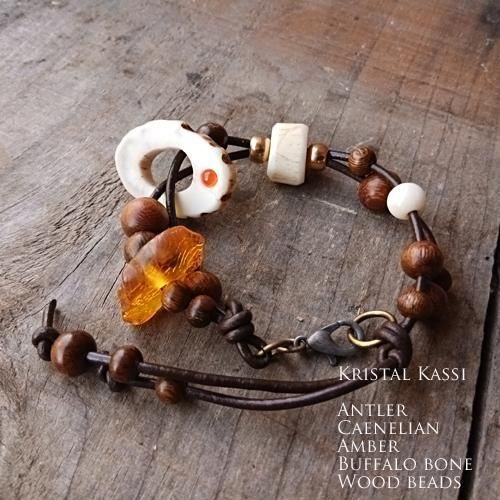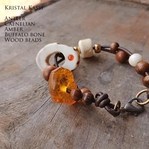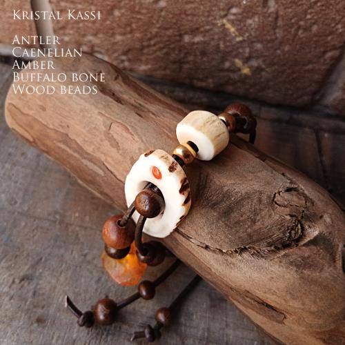 鹿角,カーネリアン,琥珀のブレスレット Godbless A