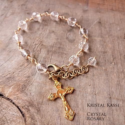 水晶をメインに色々なタイプのロザリオブレスレットを作りました。