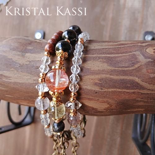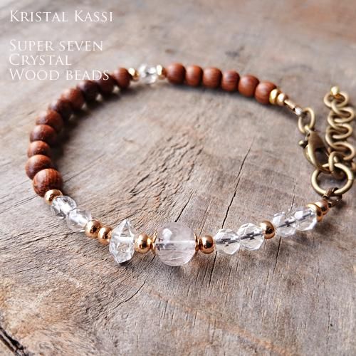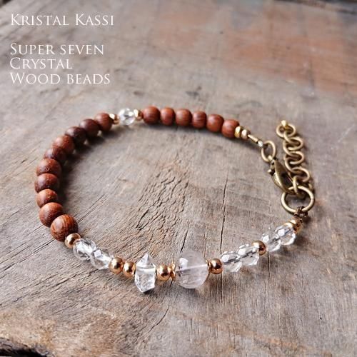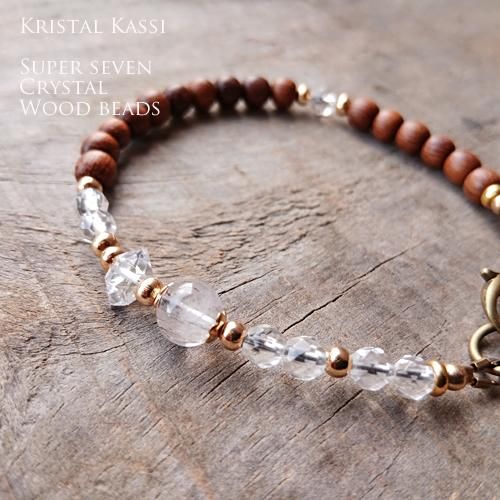 小粒な両剣水晶、スーパーセブン、カット水晶、ウッドビーズ