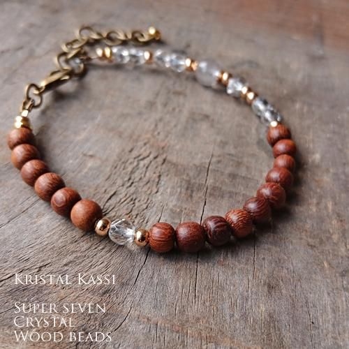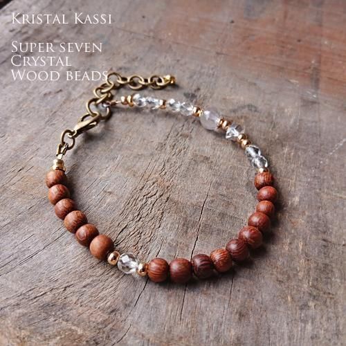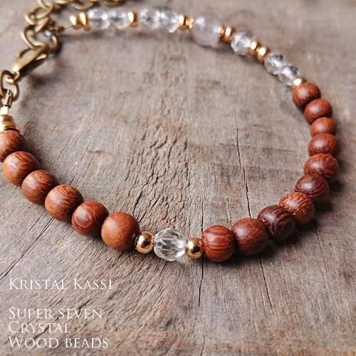 両剣水晶,スーパーセブン,ウッドビーズ 古代シャーマンのブレスレット