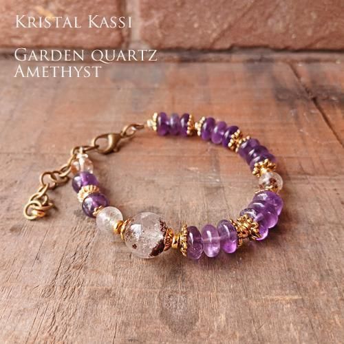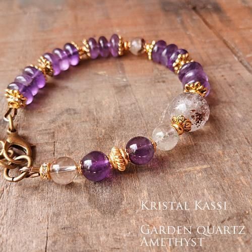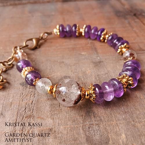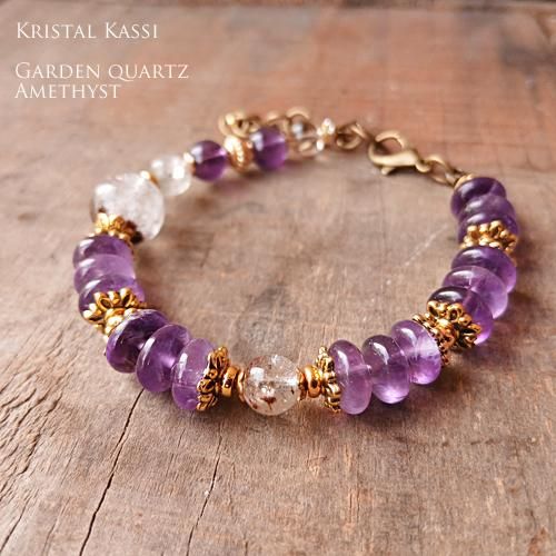 ガーデン水晶と美しいクリアな紫のアメジストのブレスレットです。