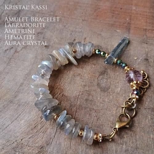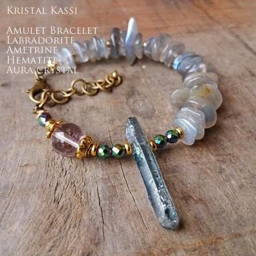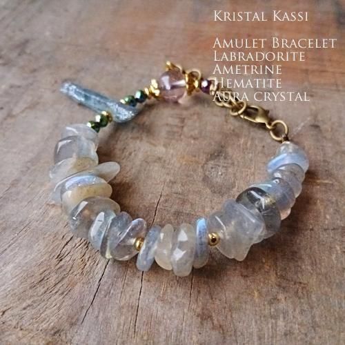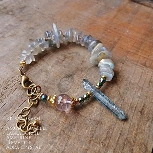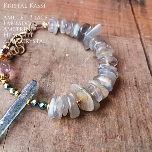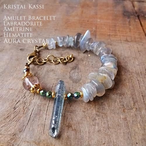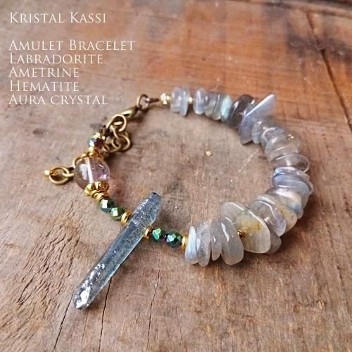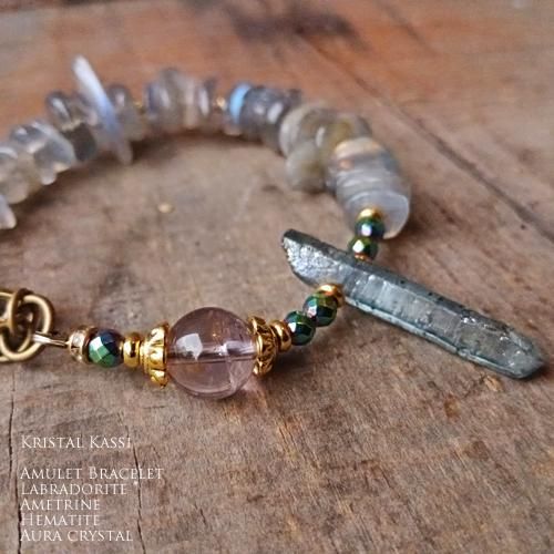 青いオーラクリスタル,アメトリン,ラブラドライトのブレスレット
