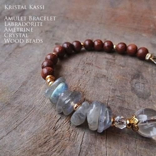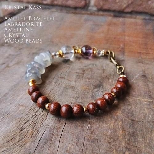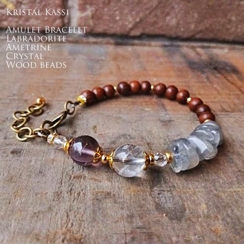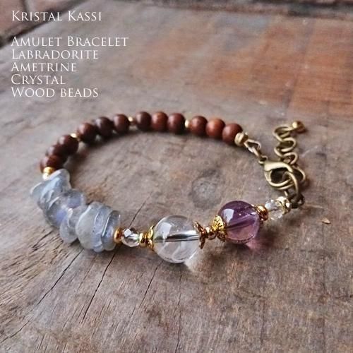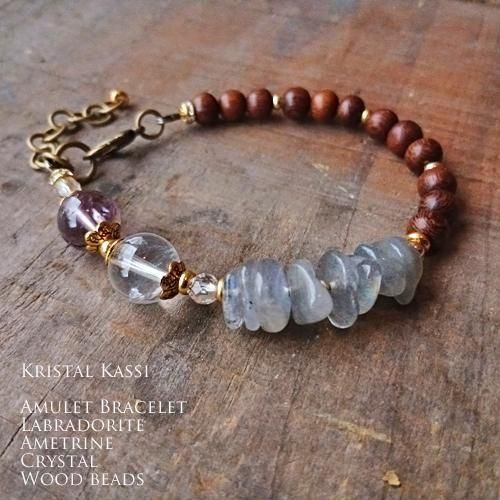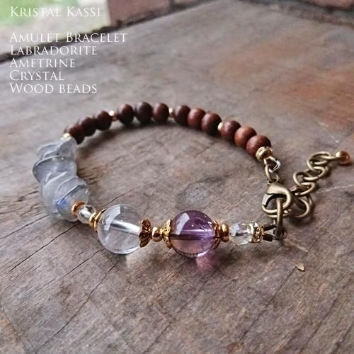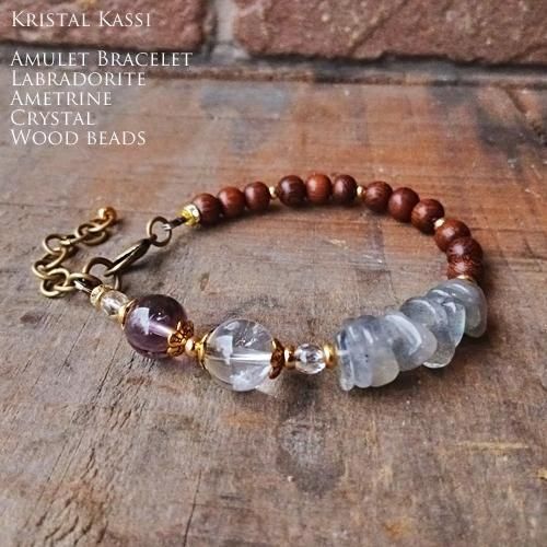 アメトリン,ラブラドライト,ウッドビーズのブレスレット